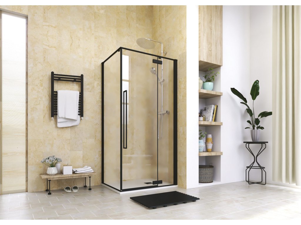 Sprchový kút obdĺžnikový s jednými otváracími dverami Koncept čierneho dizajnu sa posúva aj do kúpeľní a je čoraz viac žiadaný a preferovaný najmä v súčasných moderných priestoroch. Séria sprchovacích kútov JAGUAR s profilmi a doplnkami v matnej čiernej ponúka viacero modelov sprchovacích kútov a sprchových dverí so širokou rozmerovou paletou. Naviac v kombinácii s fixnou bočnou sklenenou stenou rieši táto séria priestorovú variabilitu jednotlivého zákazníka. Neodmysliteľnou samozrejmosťou tejto modelovej série je impregnácia skiel antiplakovou úpravou TEKNO.cal. Dokonalú stabilitu masívnych sklenených plôch v hrúbke skla 8 mm a výške 202 cm dodatočne podporuje nenápadný horný stabilizačný rám. Tento v kombinácii spolu s predĺženým štíhlym úchytom dverí umocňujú vizuálny efekt progresívnej elegancie s ohľadom na pohodlnú manipuláciu pri používaní. UPOZORNENIE! Pri výbere sprchového kúta je veľmi dôležitý inštalačný rozmer tzv. ROZTIAHNUTIE PROFILOV , ktorý nájdete v tabuľke. Roztiahnutie určuje minimálny a maximálny rozmer sprchového kúta. Sprchové kúty Aquatek sú dodávané BEZ SPRCHOVEJ VANIČKY . Vhodné vaničky a iné príslušenstvo nájdete pod záložkou SÚVISIACE PRODUKTY.Dodatočné parametre