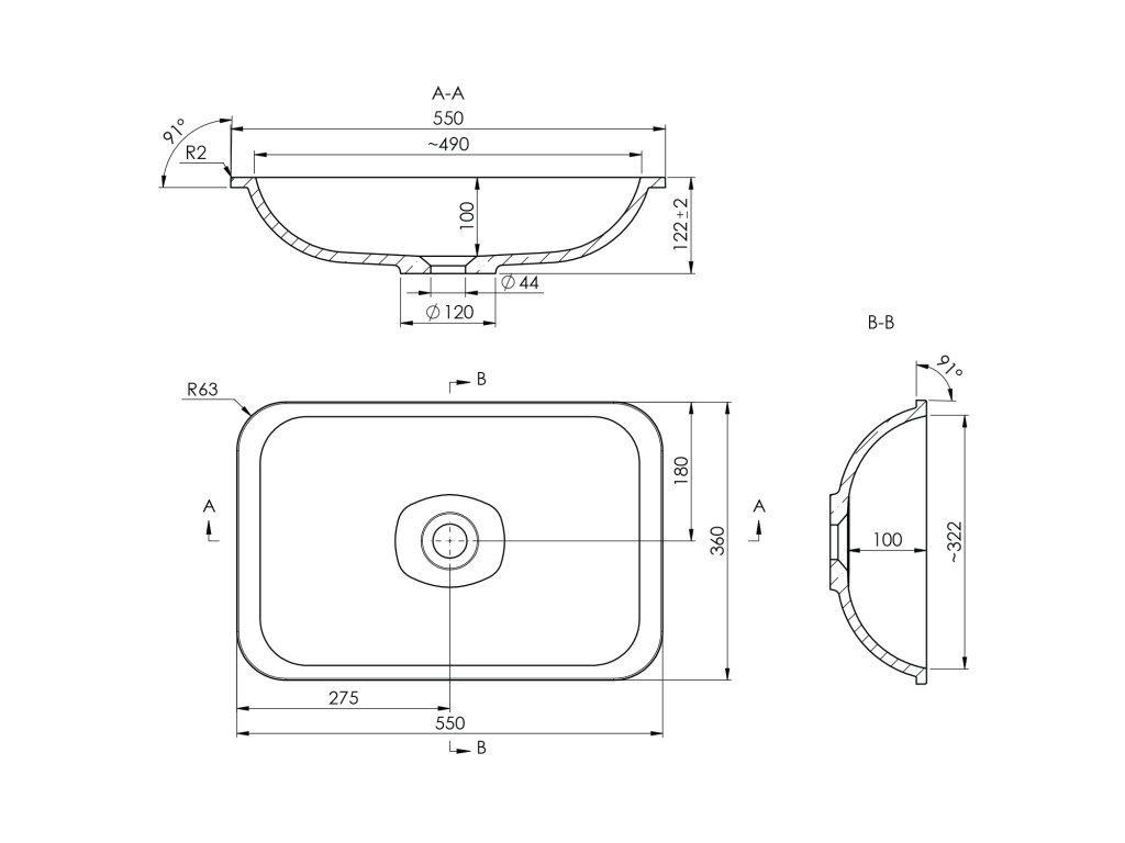 Japura umývadlo 55x36cm, liaty mramor, biela, zápustne