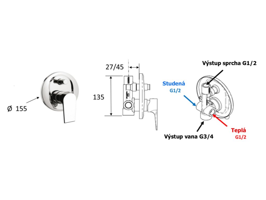 KAI podomietková sprchová batéria, 2 výstupy, chróm