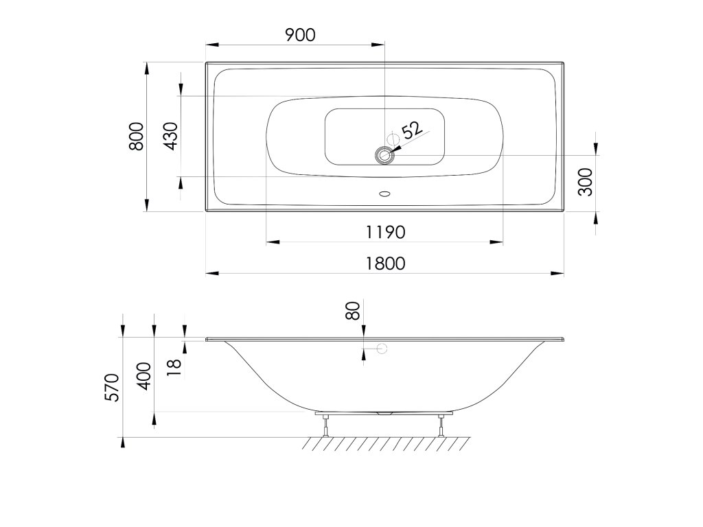 KALDERA SLIM obdĺžniková vaňa 180x80x40cm, biela