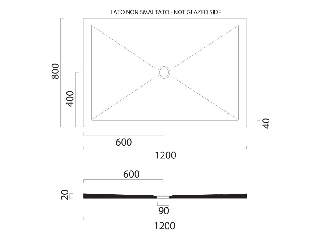 Keramická sprchová vanička, obdĺžnik 120x80x2cm, creta mat