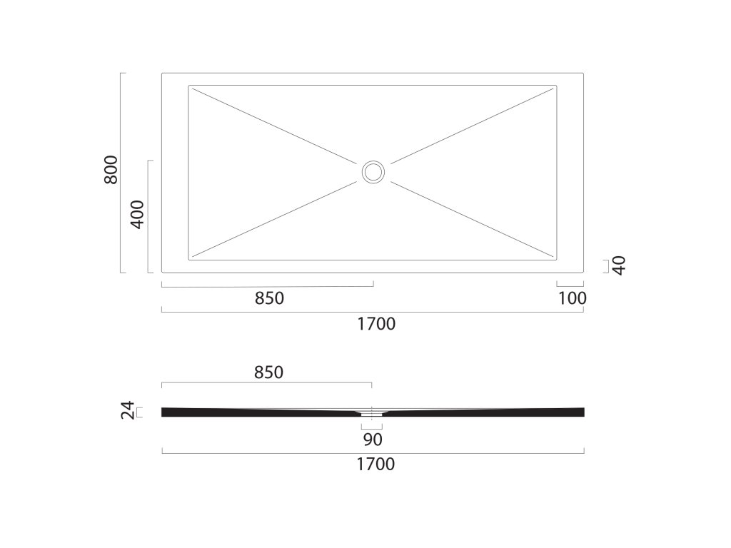 Keramická sprchová vanička, obdĺžnik 170x80x2cm, agave mat