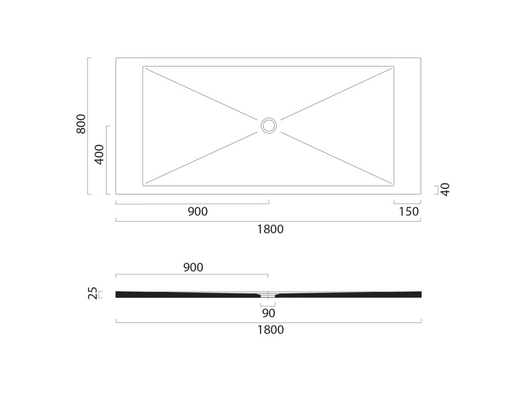 Keramická sprchová vanička, obdĺžnik 180x80x2cm, agave mat