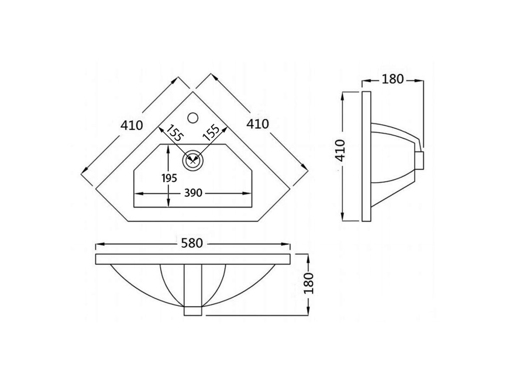 Keramické umývadlo rohové 41x41 cm, na nábytok