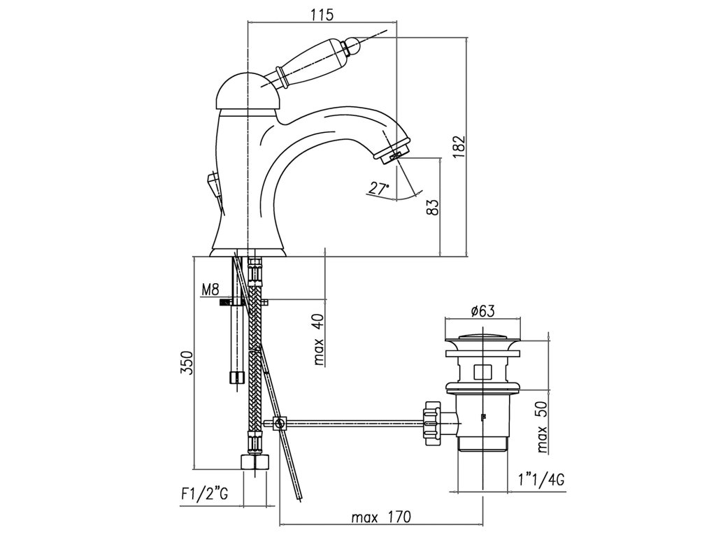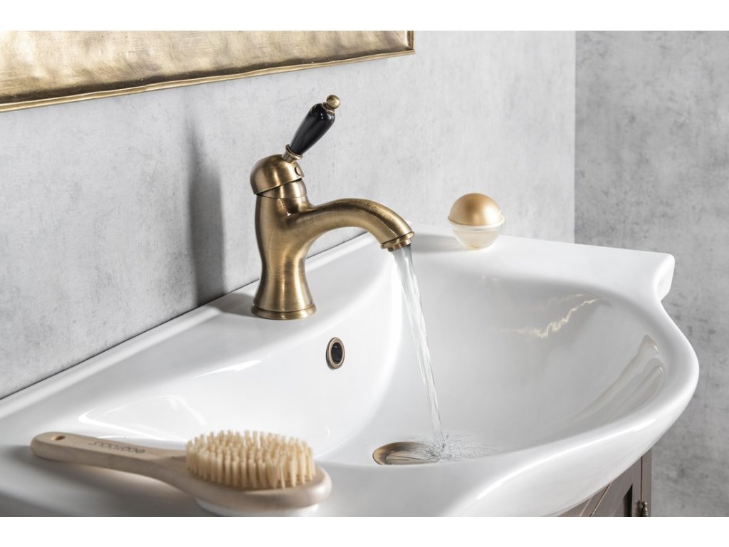 KIRKÉ BLACK stojanková umývadlová batéria s výpusťou, čierna páčka, bronz