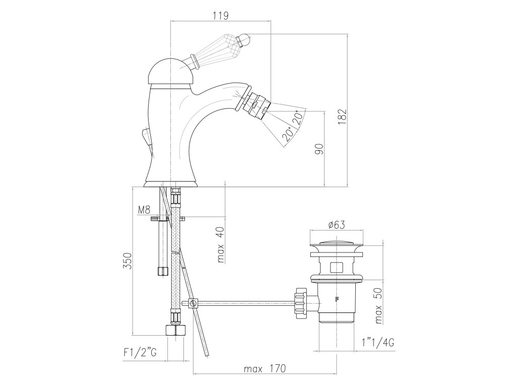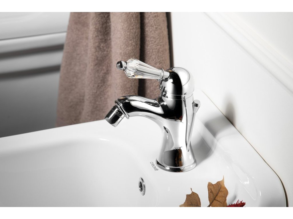 KIRKÉ CRYSTAL stojánkova bidetová batéria s výpusťou, krištáľová páčka, chróm