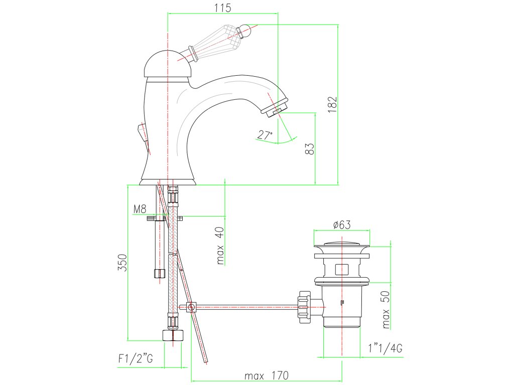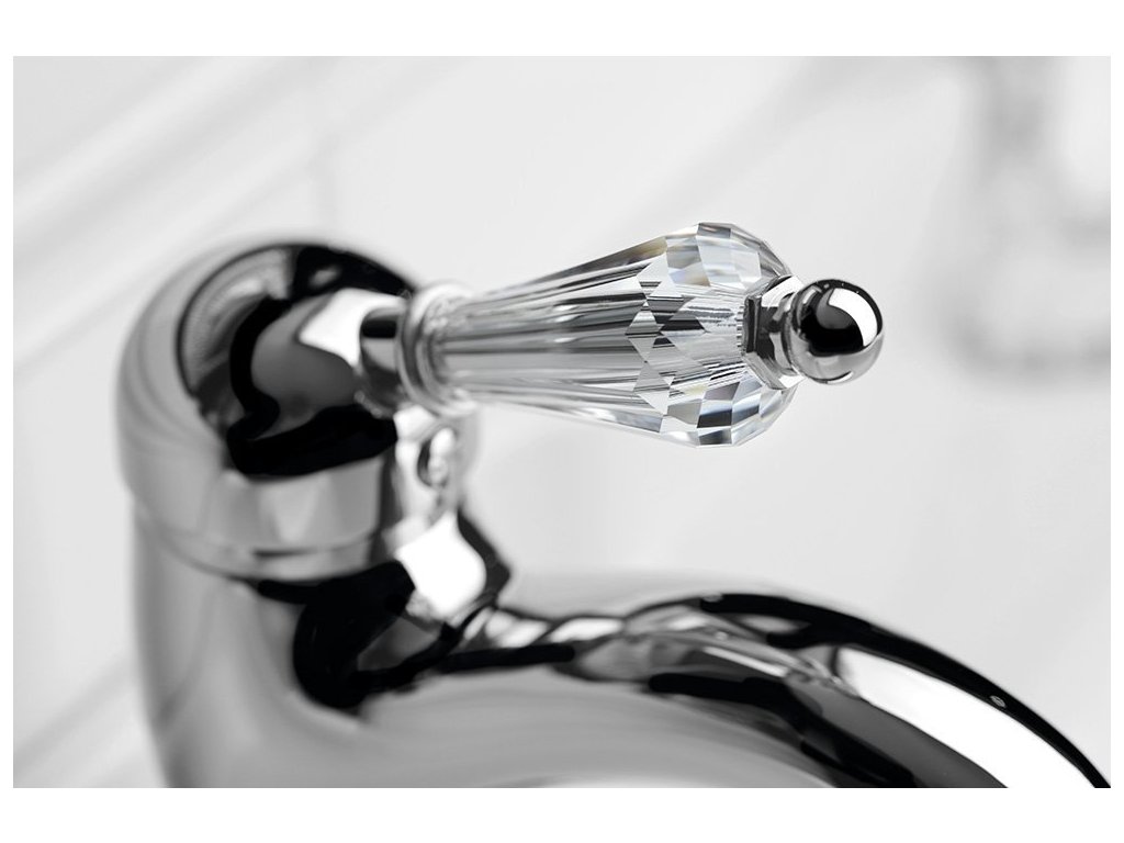 KIRKÉ CRYSTAL stojánkova umývadlová batéria s výpusťou, krištáľová páčka, chróm