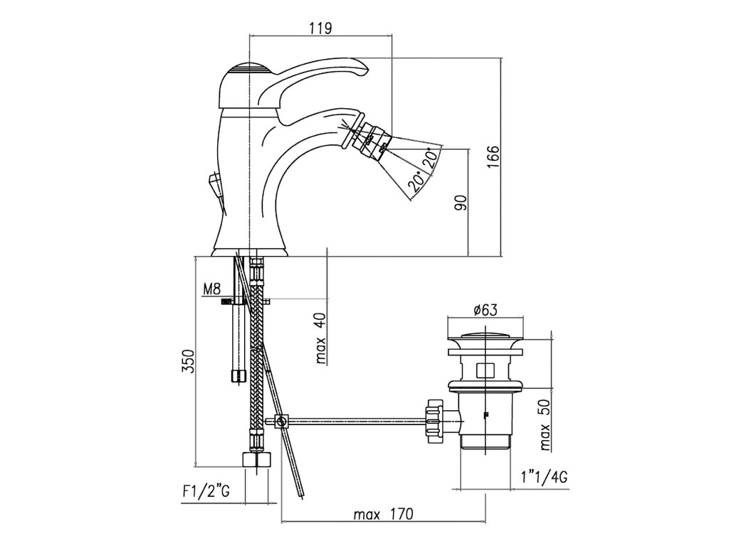 KIRKÉ stojánkova bidetová batéria s výpusťou, zlato