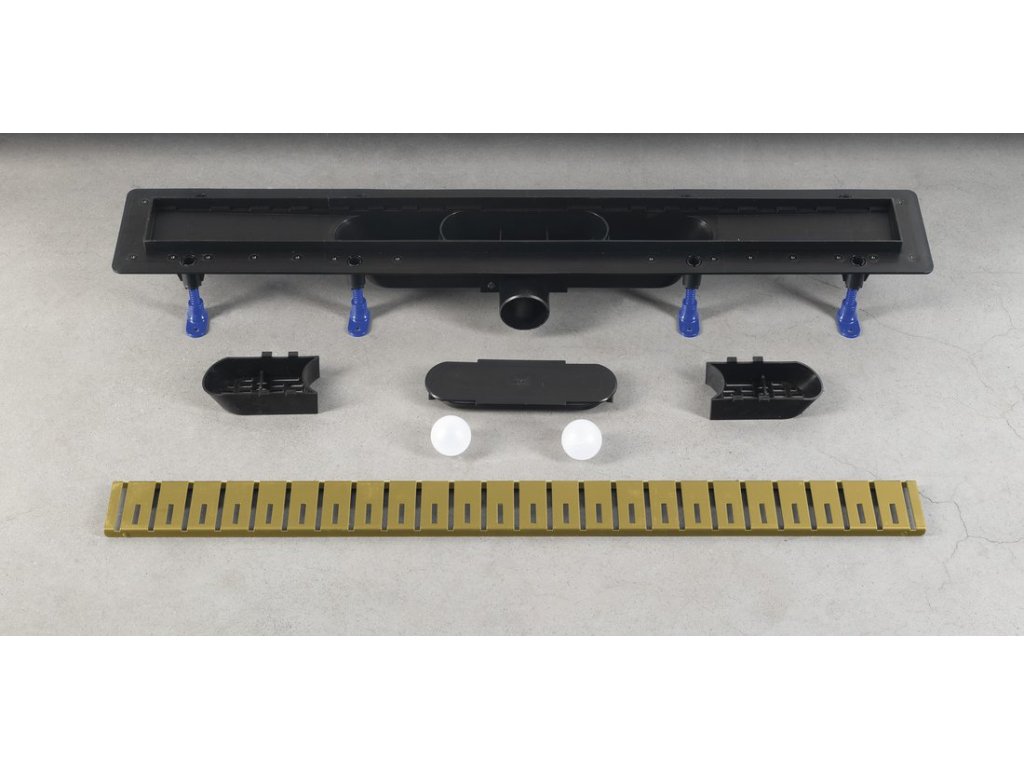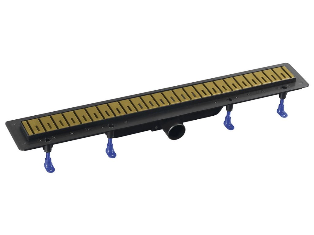 KLAVER podlahový žľab s roštom z nerezové oceli, L-910, DN50, zlato mat