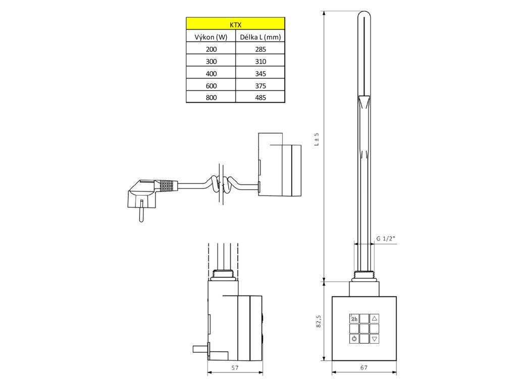 KTX - elektrická vykurovacia tyč s dizajnovým termostatom. Hranatý design vhodný pre všetky typy radiátorov. Symetrické prevedenie umožňuje inštaláciu na ľavú aj pravú stranu radiátora.