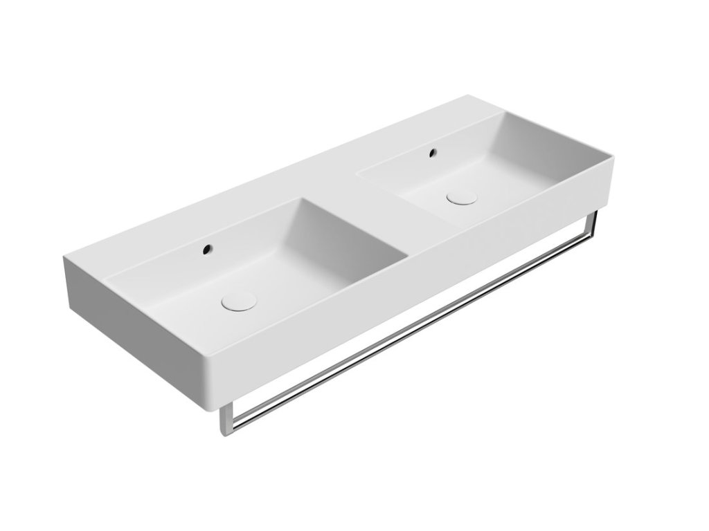 KUBE X keramické dvojumývadlo 120x47cm, brúsená spodná hrana, bez otvoru, biela mat