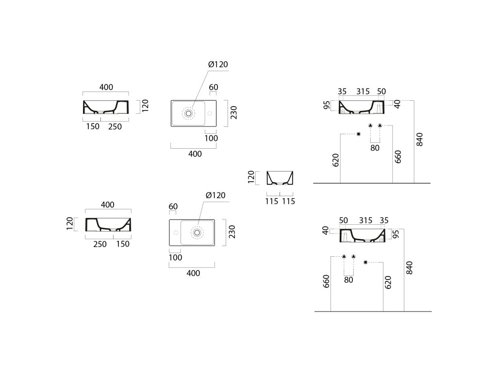 KUBE X keramické umývadlo 40x23cm, bez otvoru, pravé/ľavé, biela ExtraGlaze