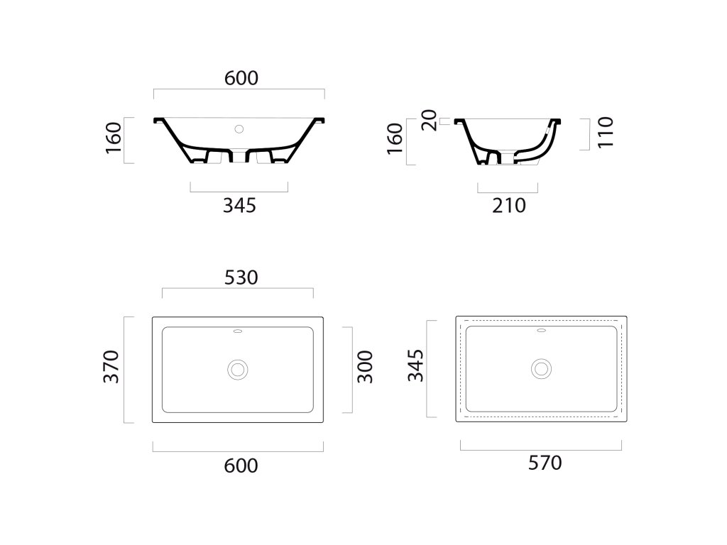 KUBE X keramické umývadlo 60x37cm, zapustné, brúsená spodná hrana, biela ExtraGlaze