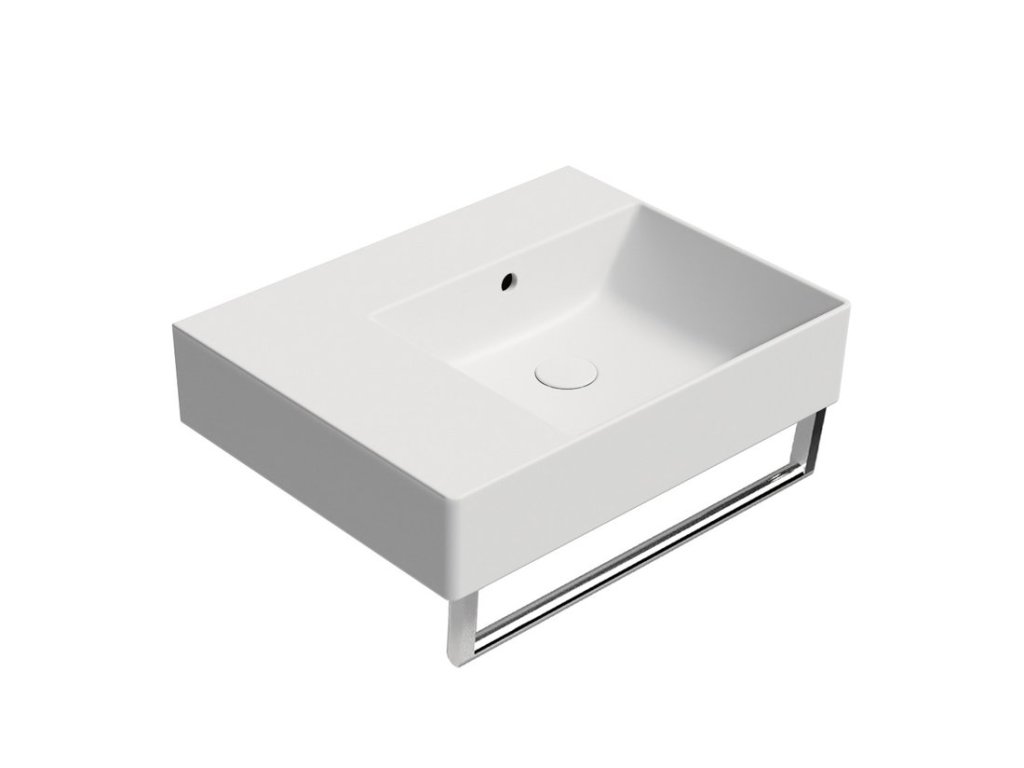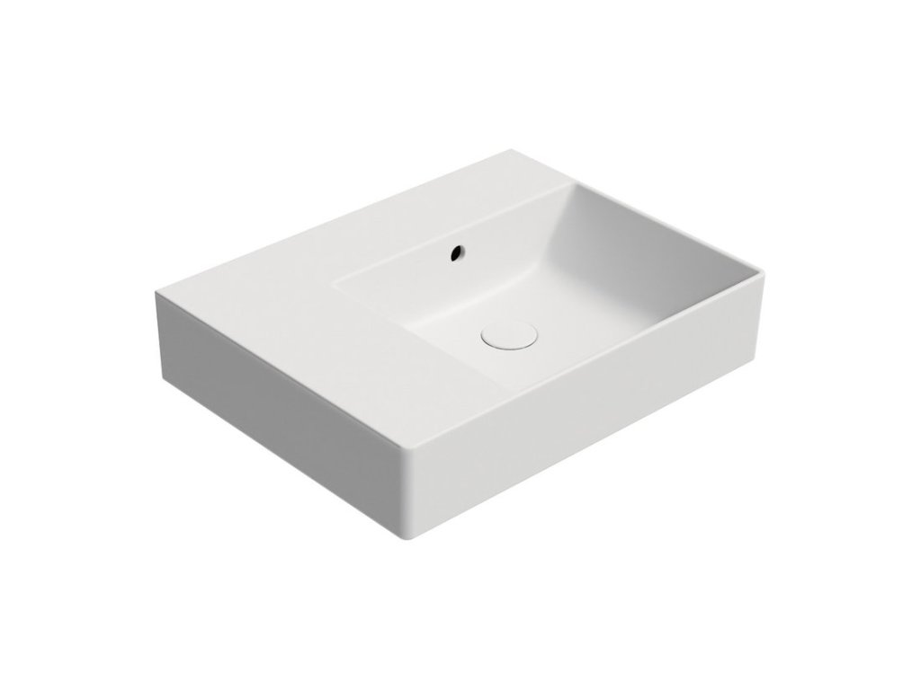 KUBE X keramické umývadlo 60x47cm, s odkladacou plochou vľavo, bez otvoru, biela mat