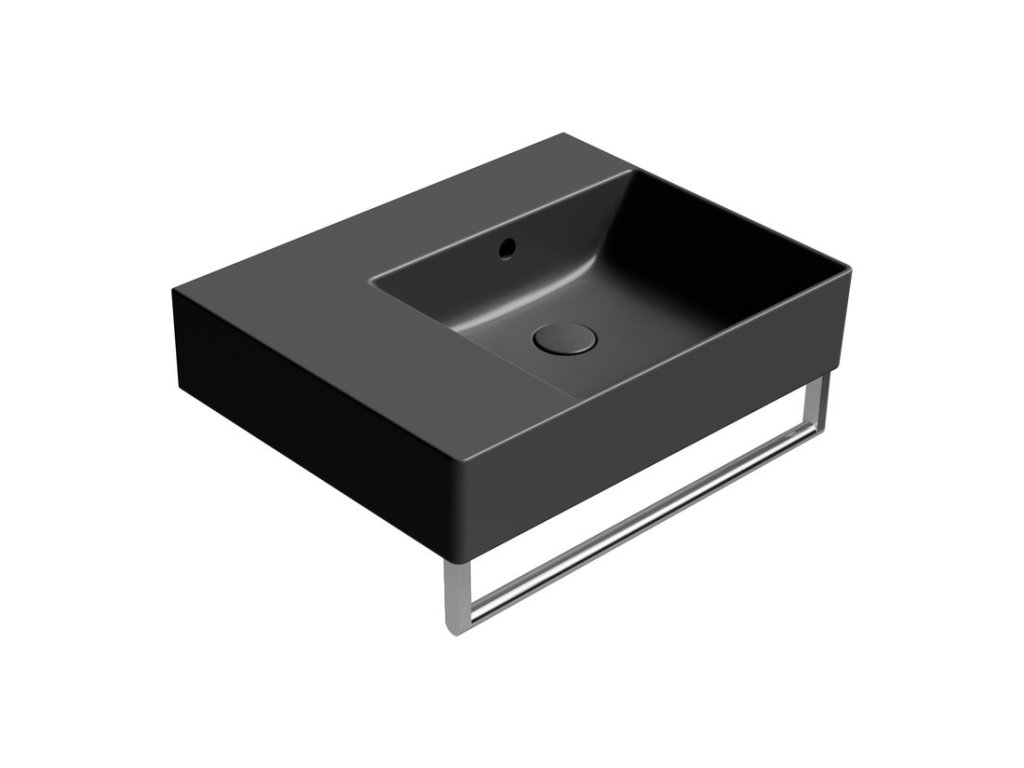 KUBE X keramické umývadlo 60x47cm, s odkladacou plochou vľavo, bez otvoru, čierna mat