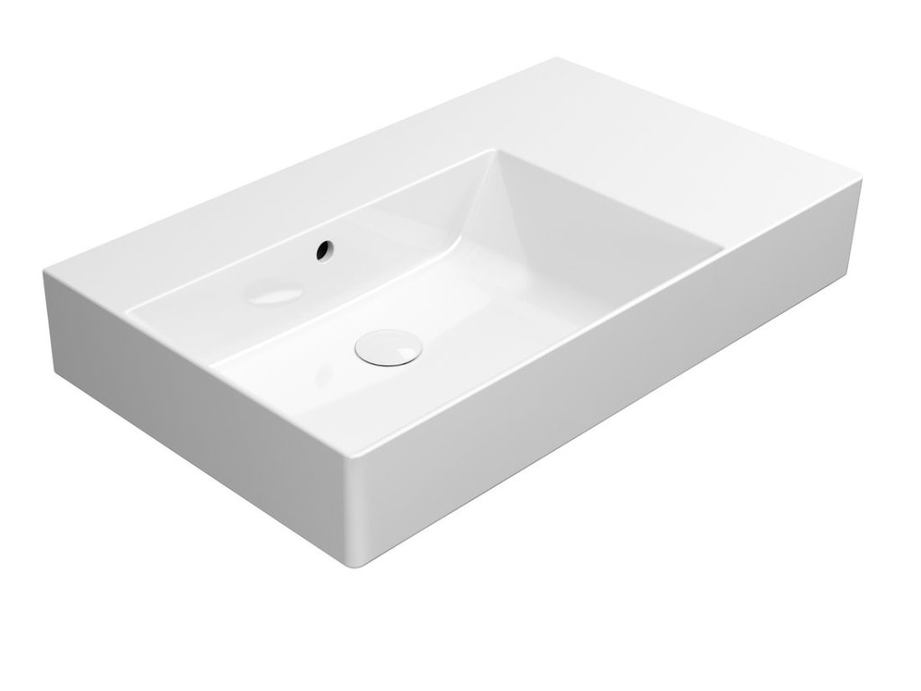 KUBE X keramické umývadlo 80x47cm, s odkladacou plochou vpravo, bez otvoru, biela ExtraGlaze