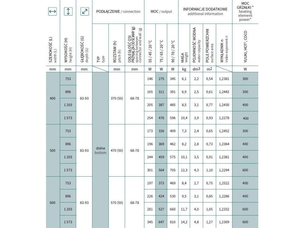 - 500 × 896 mm, výkon 380 W, (vykurovacia tyč 400 W)