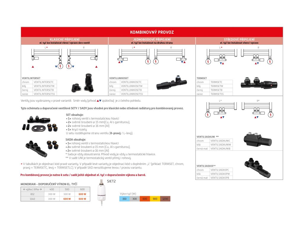 Radiátory sú dodávané BEZ vykurovacej tyče, za rozmerom je iba uvedený odporúčaný výkon elektrickej vykurovacej tyče pre tento rozmer.
