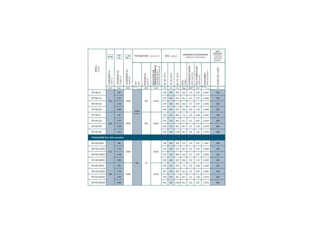 - 540 × 1800 mm, výkon 838 W (vykurovacia tyč 900 W)