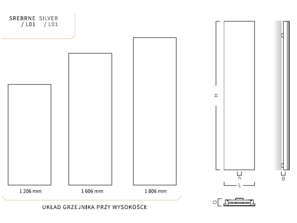 Telo radiátora INDIVI je tvorené zrkadlom , tie sú dodávané vo variante L01 - strieborná. Vzor zrkadiel nájdete v galérii obrázkov produktu.