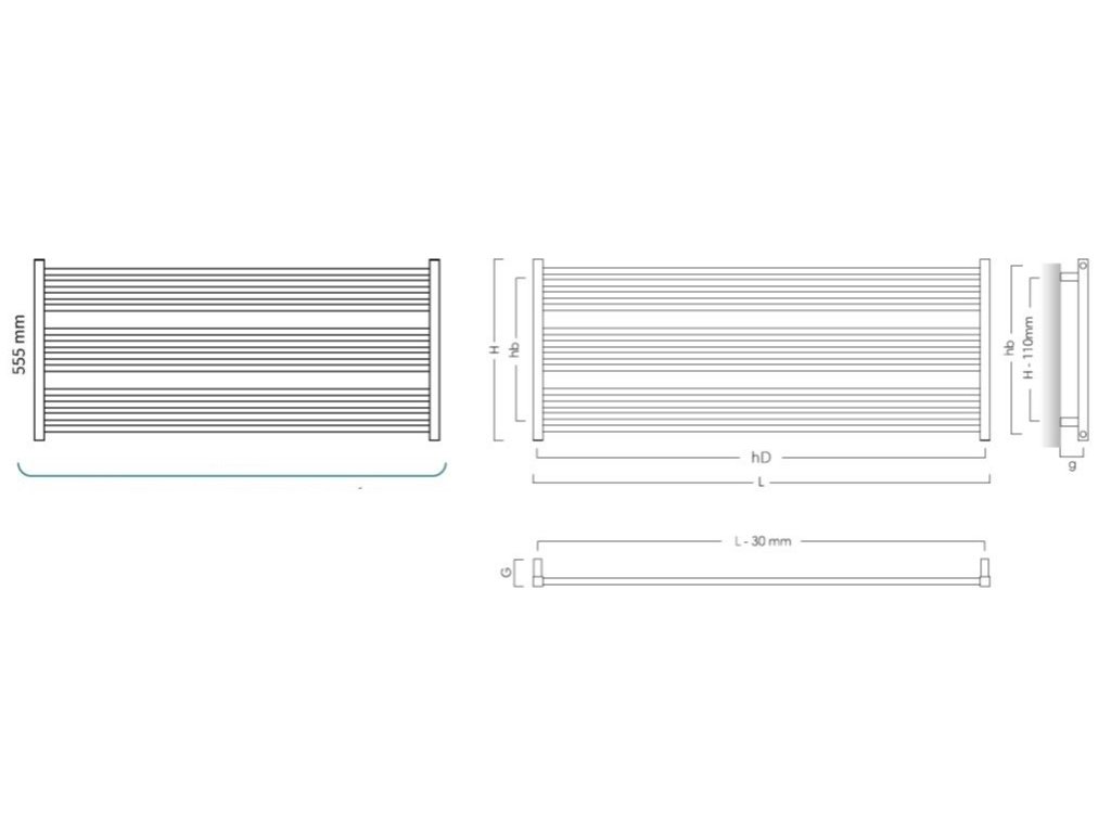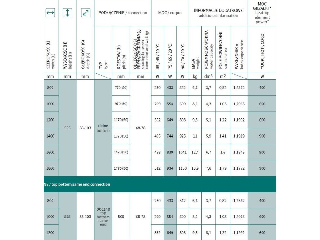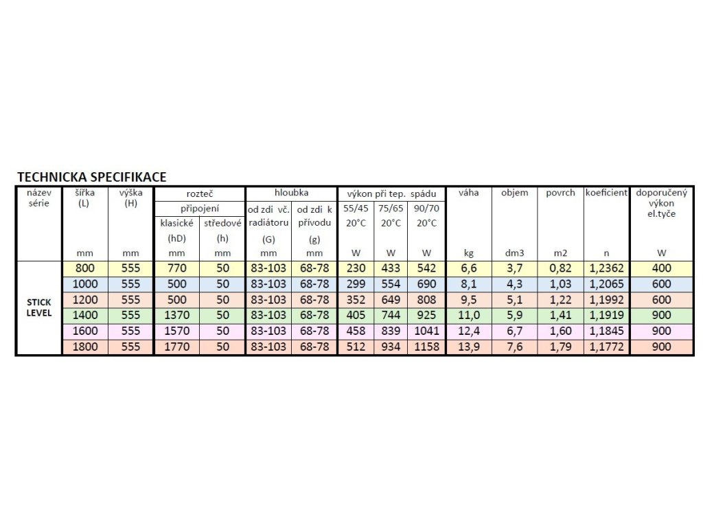 - 1000 × 555 mm, výkon 554 W, vykurovacia tyč 600 W - BOČNÉ PRIPOJENIE