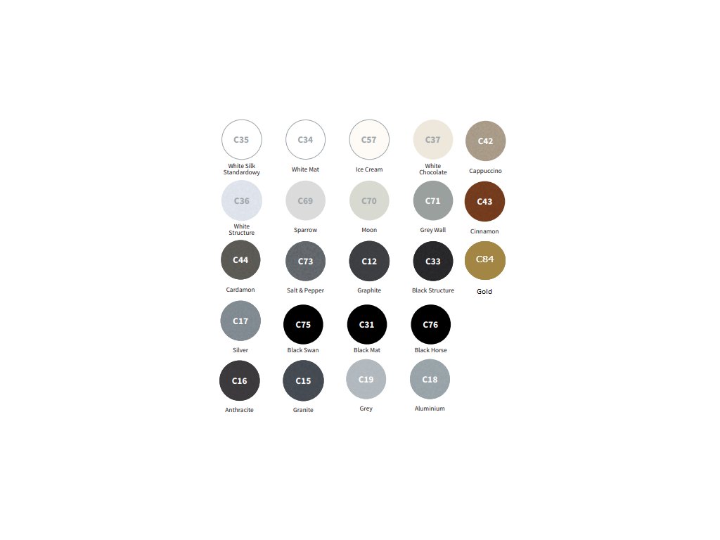 - farba podľa vzorkovníka výrobcu , štandardná farba C35 white silk (biela lesklá)