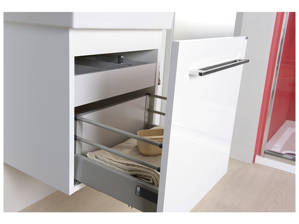 Nábytok je vybavený pojazdy zásuviek s pomalým dojazdom a systémom automatického dovretí zásuviek. Už žiadne hlučné zatváranie.