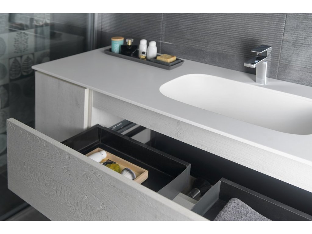 Nábytok je vybavený pojazdy zásuviek s pomalým dojazdom a systémom automatického dovretí zásuviek. Už žiadne hlučné zatváranie.