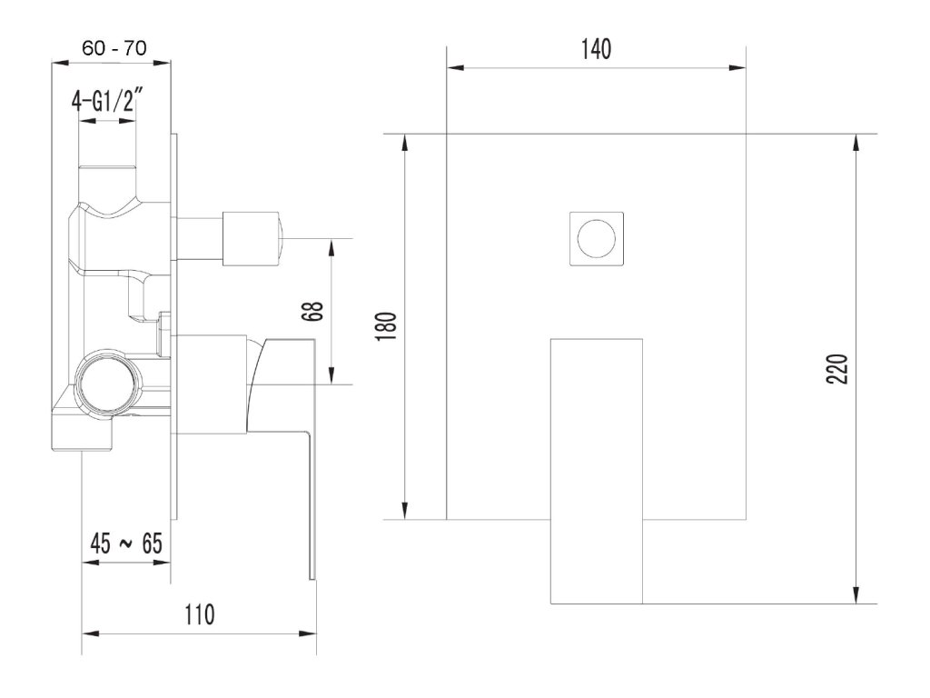LATUS podomietková sprchová batéria, 2 výstupy, chróm