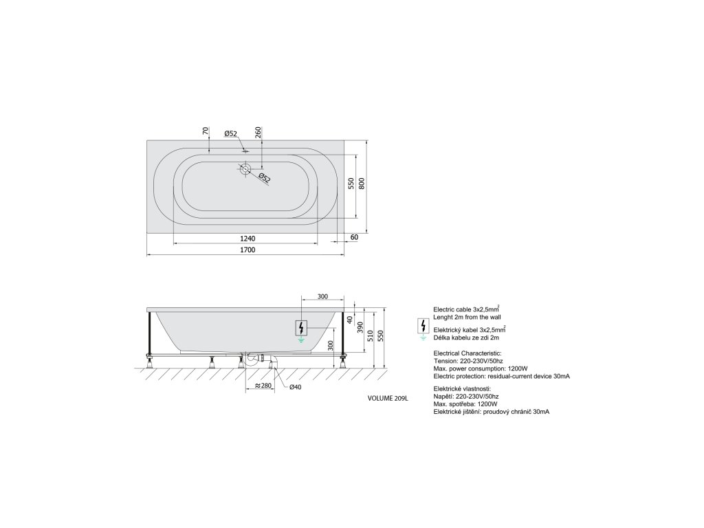 - Jednoduchá inštalácia (ako klasické vane + el. prívod)