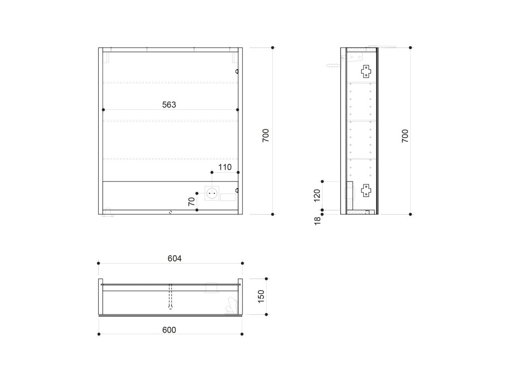 Výbava | Osvetlenie, Integrovaná el. zásuvka, Obojstranné zrkadlové dvierka, Spomaľovacie pánty |