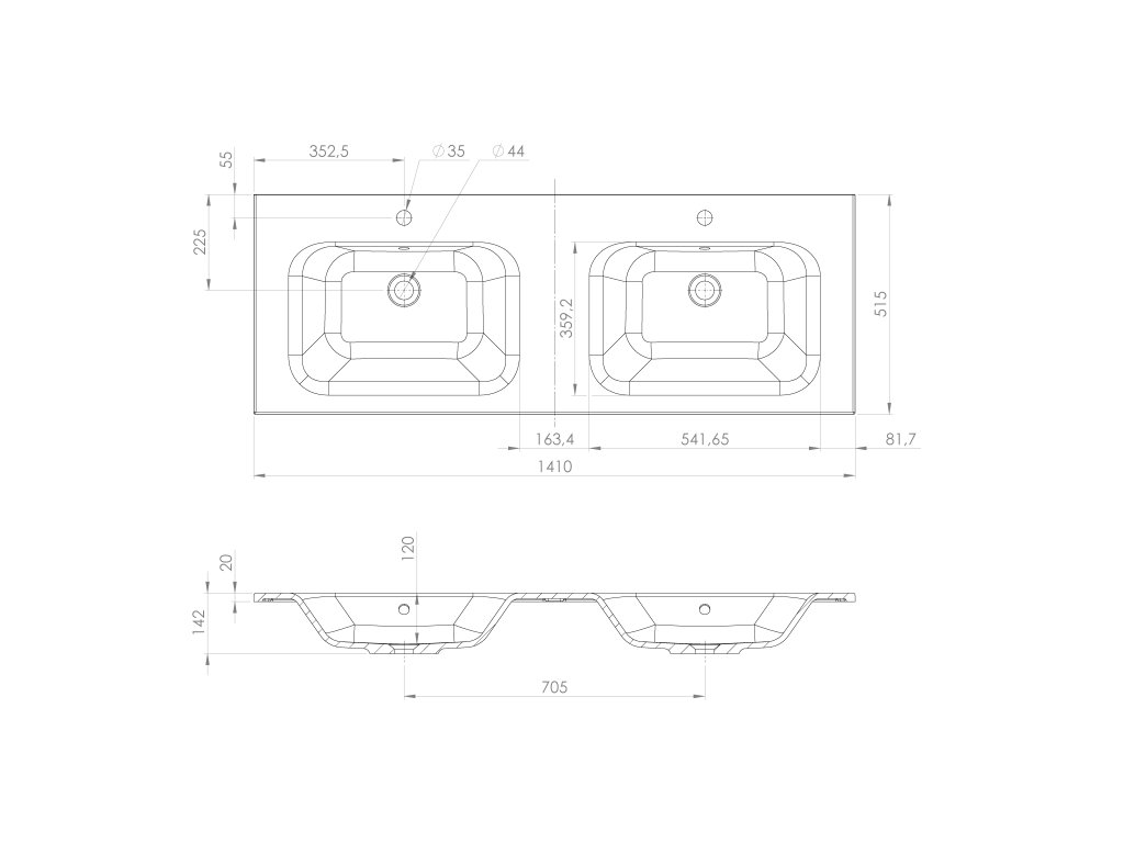 LOREA skrinka s dvojumývadlom 141x46x51,5cm (70+70cm), dub alabama/biela matná
