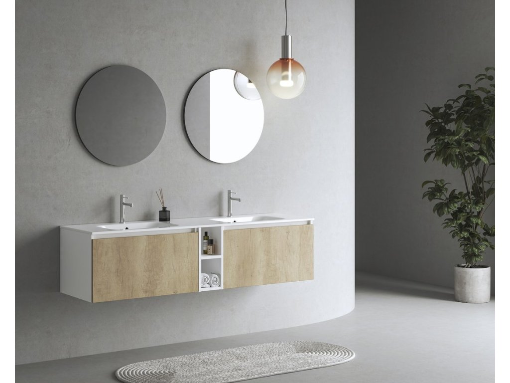 LOREA skrinka s dvojumývadlom 181x46x51,5cm (80+20+80cm), dub alabama/biela matná