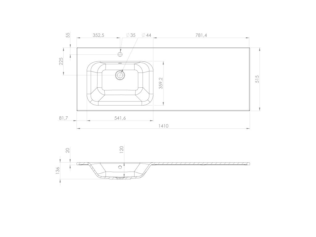 LOREA skrinka s umývadlom 141x46x51,5cm (70+70cm), ľavá, dub alabama/biela matná