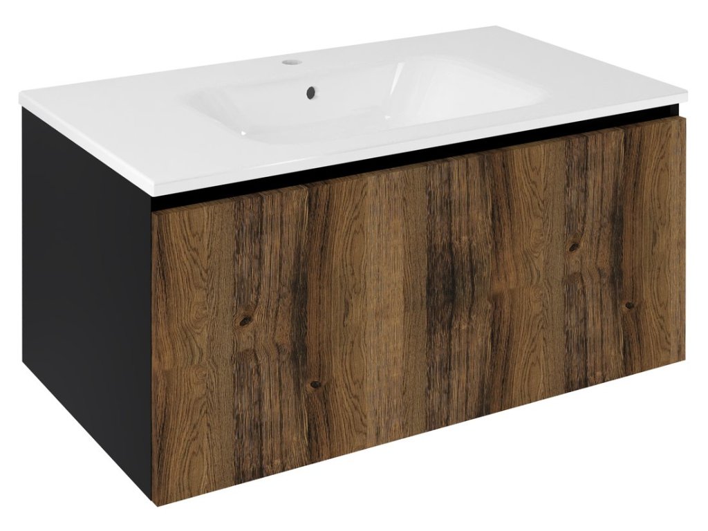 LOREA umývadlová skrinka 90x44x51,2cm, 1x zásuvka, dub collingwood/čierna matná