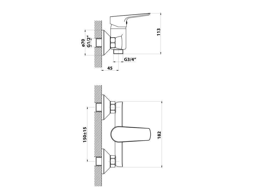 LOTTA nástenná batéria, ploché ramienko zvýšené, chróm