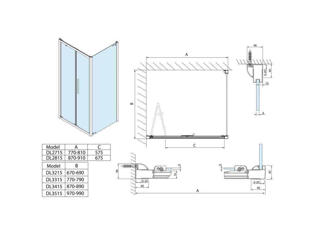 LUCIS LINE skladacie sprchové dvere 900mm, číre sklo