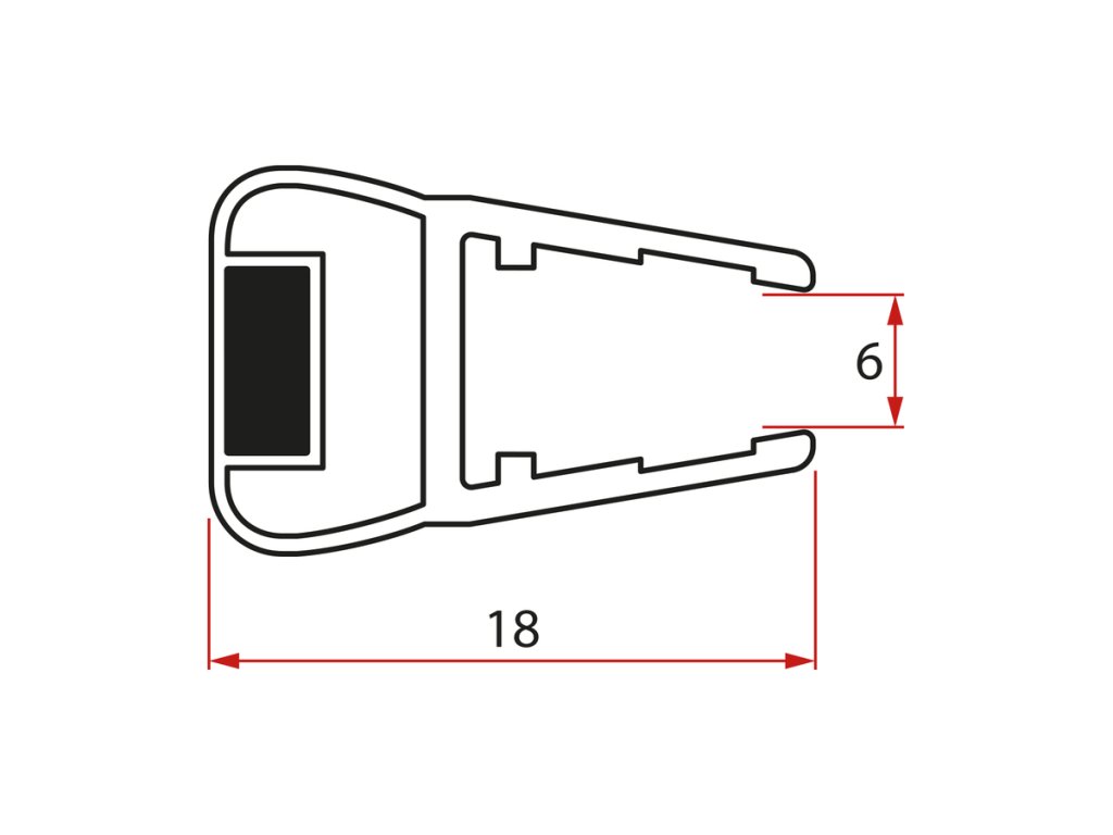 Magneticé tesnení ploché, sklo 6mm, 1900mm