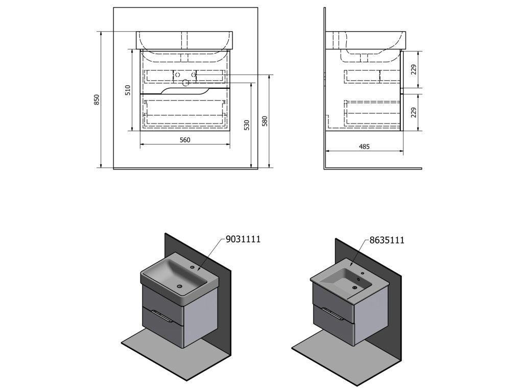 MEDIENA umývadlová skrinka 56x51x48,5cm, biela matná/dub graphite