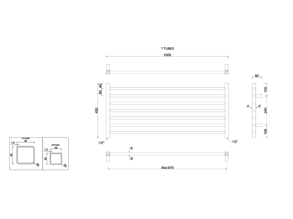 METRO vykurovacie teleso 1000x450 mm, chrom
