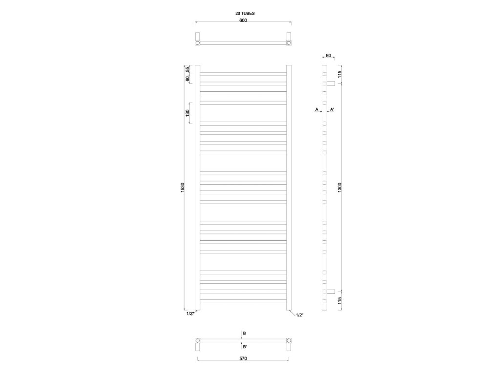METRO vykurovacie teleso 600x1530 mm, chrom