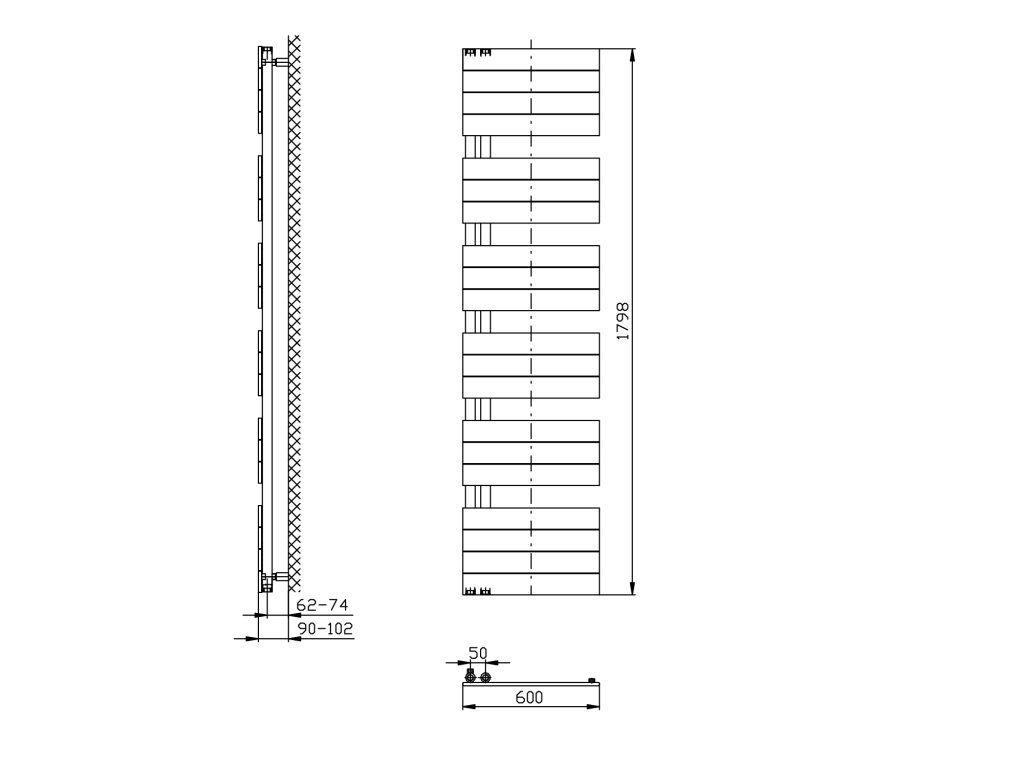 MILI vykurovacie teleso 600x1798mm, čierna mat