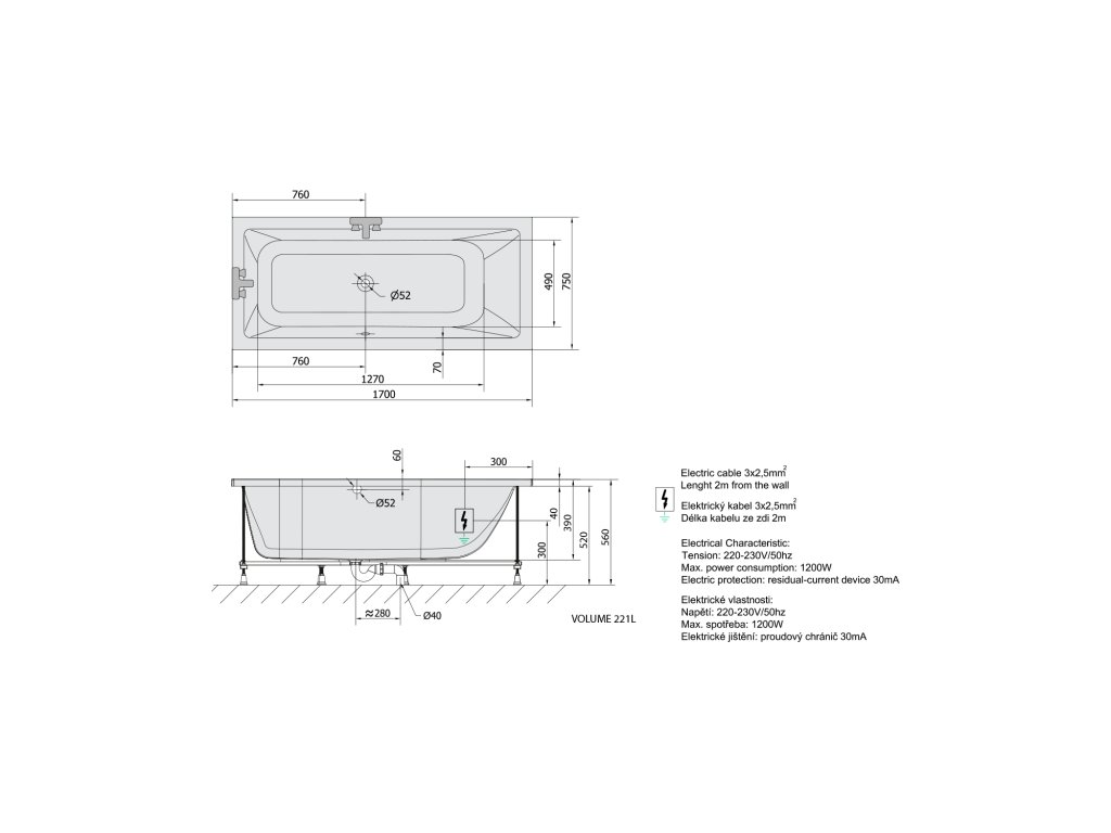 - Jednoduchá inštalácia (ako klasické vane + el. prívod)