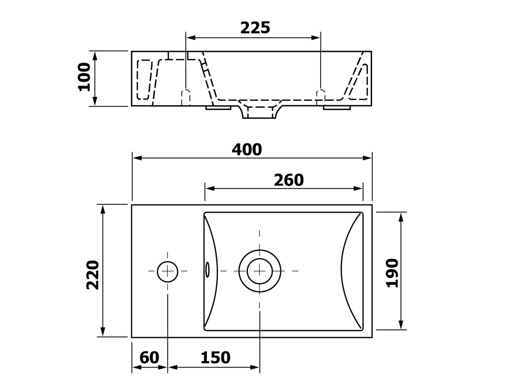 MINOS keramické umývadielko 40x22cm, batéria vľavo, biela