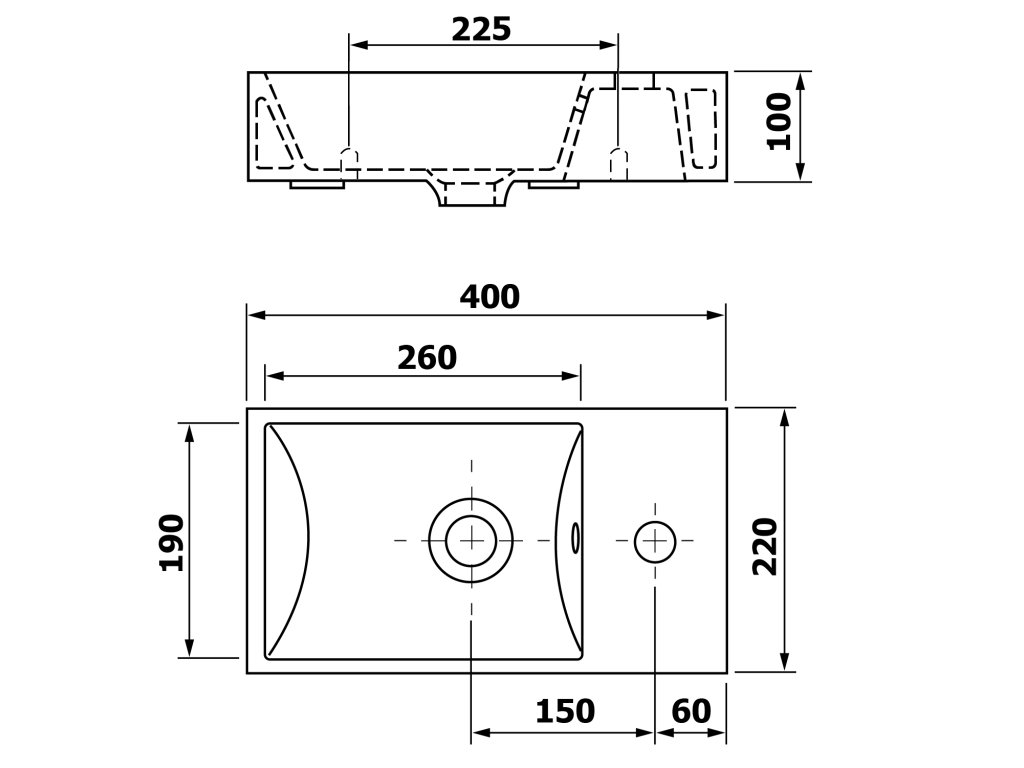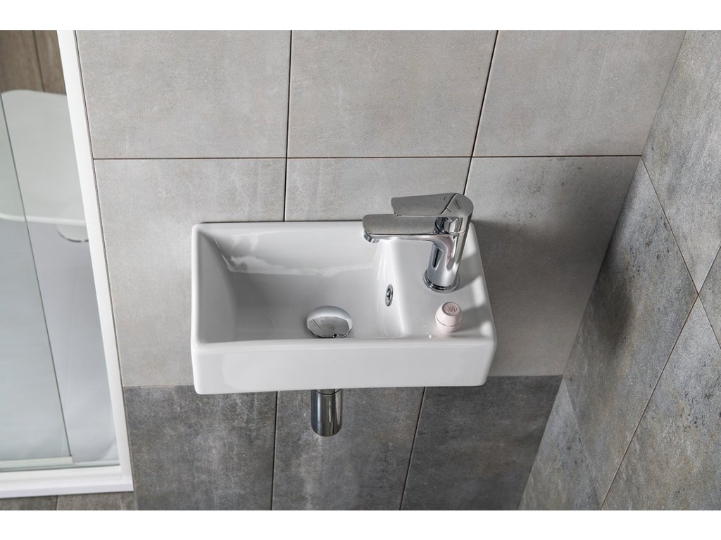 MINOS keramické umývadielko 40x22cm, batéria vpravo, biela