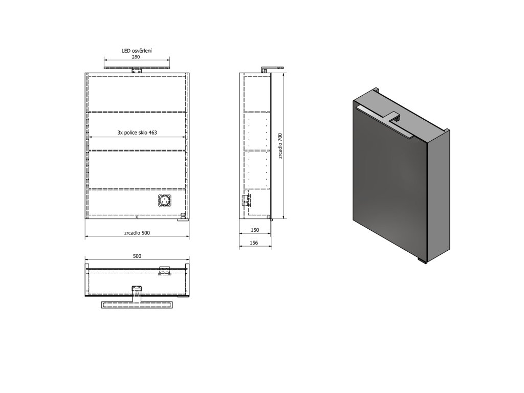 Výbava: | Osvetlenie;Integrovaná el. zásuvka;Obojstranné zrkadlové dvierka;Spomaľovacie pánty |