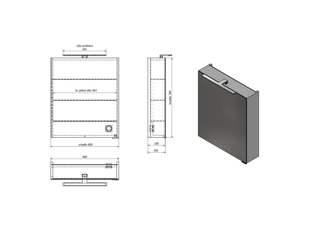 Výbava: | Osvetlenie;Integrovaná el. zásuvka;Obojstranné zrkadlové dvierka;Spomaľovacie pánty |