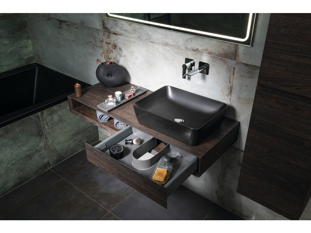 Nábytok je vybavený pojazdy zásuviek s pomalým dojazdom a systémom automatického dovretí zásuviek. Už žiadne hlučné zatváranie.
