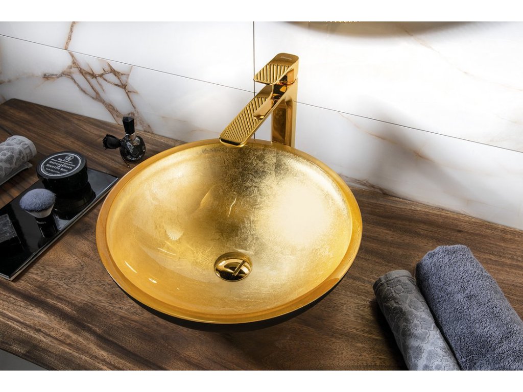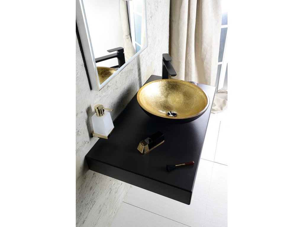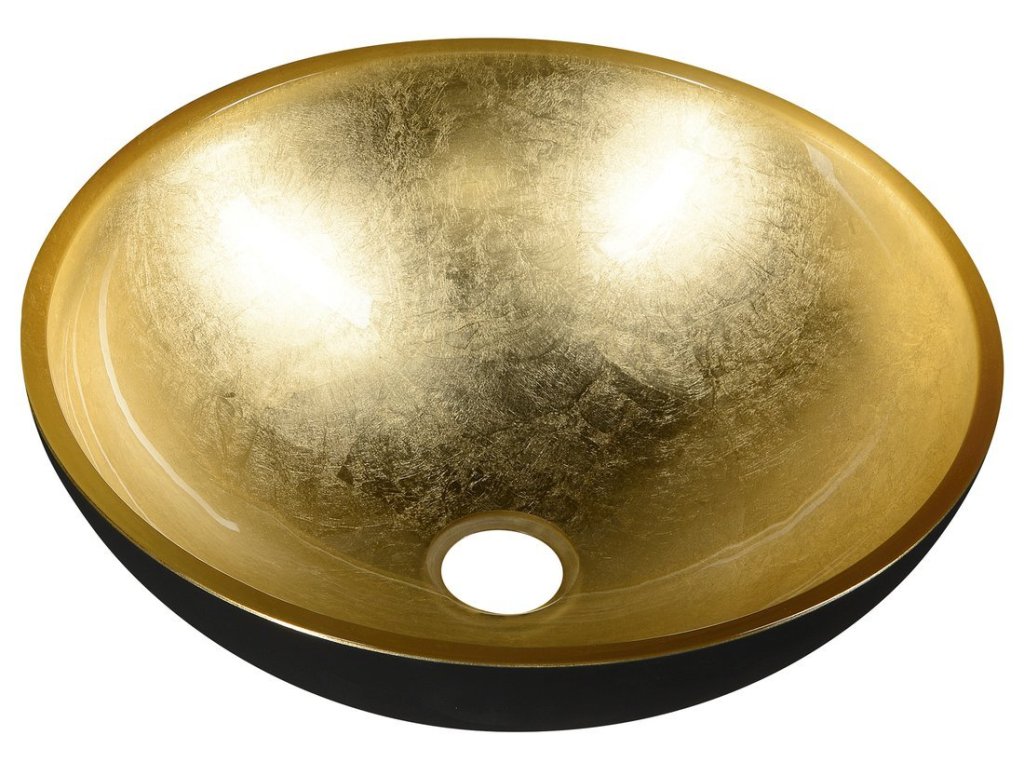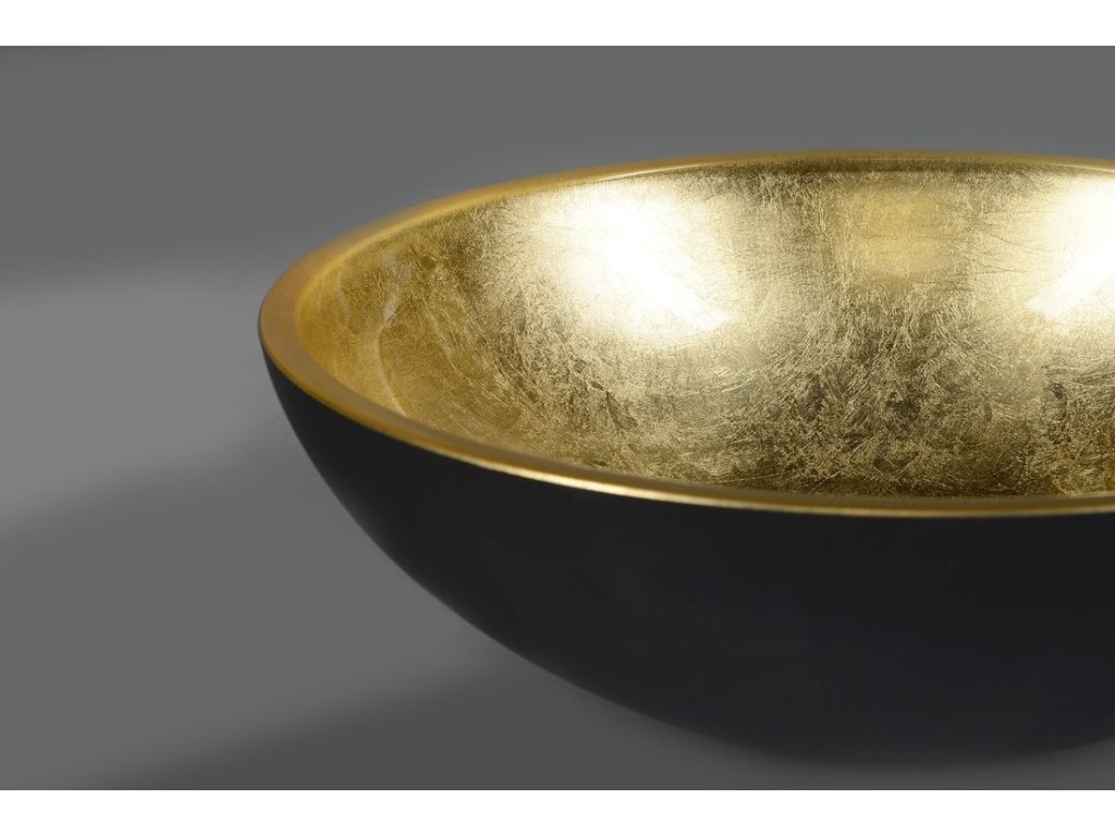 MURANO BLACK-GOLD sklenené umývadlo na dosku, priemer 40cm, zlata/čierna