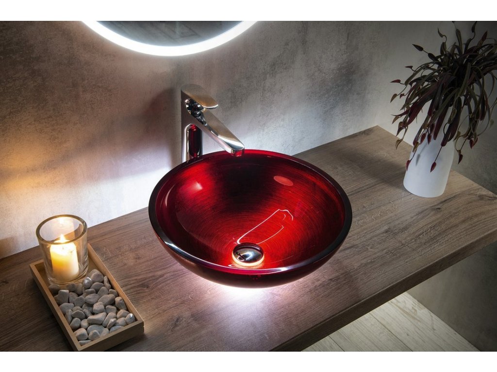 MURANO ROSSO IMPERO sklenené umývadlo na dosku, priemer 40cm, červené